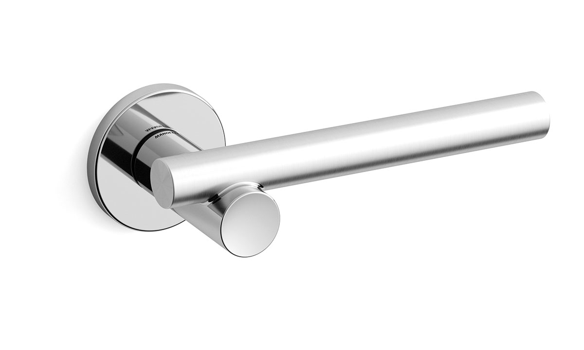 Chrome/satinchrome Bilbao deurkruk op rozet 51×6 mm.