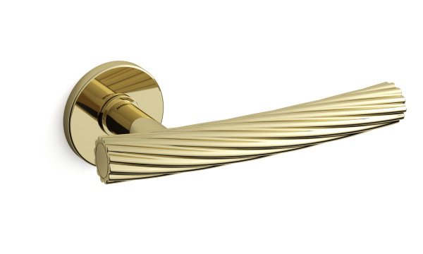 Messing gepolijst Fusilla deurkruk op rozet 51×6 mm.