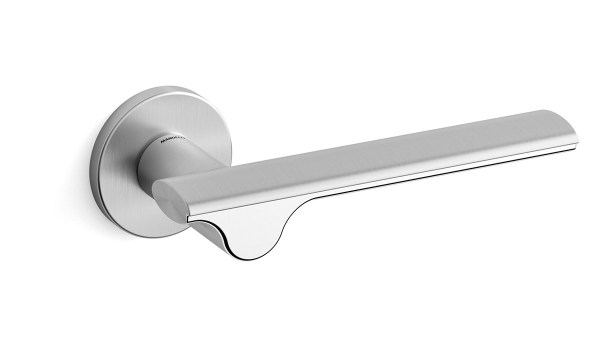 Satinchrome/chrome Ara deurkruk op rozet 51×6 mm.