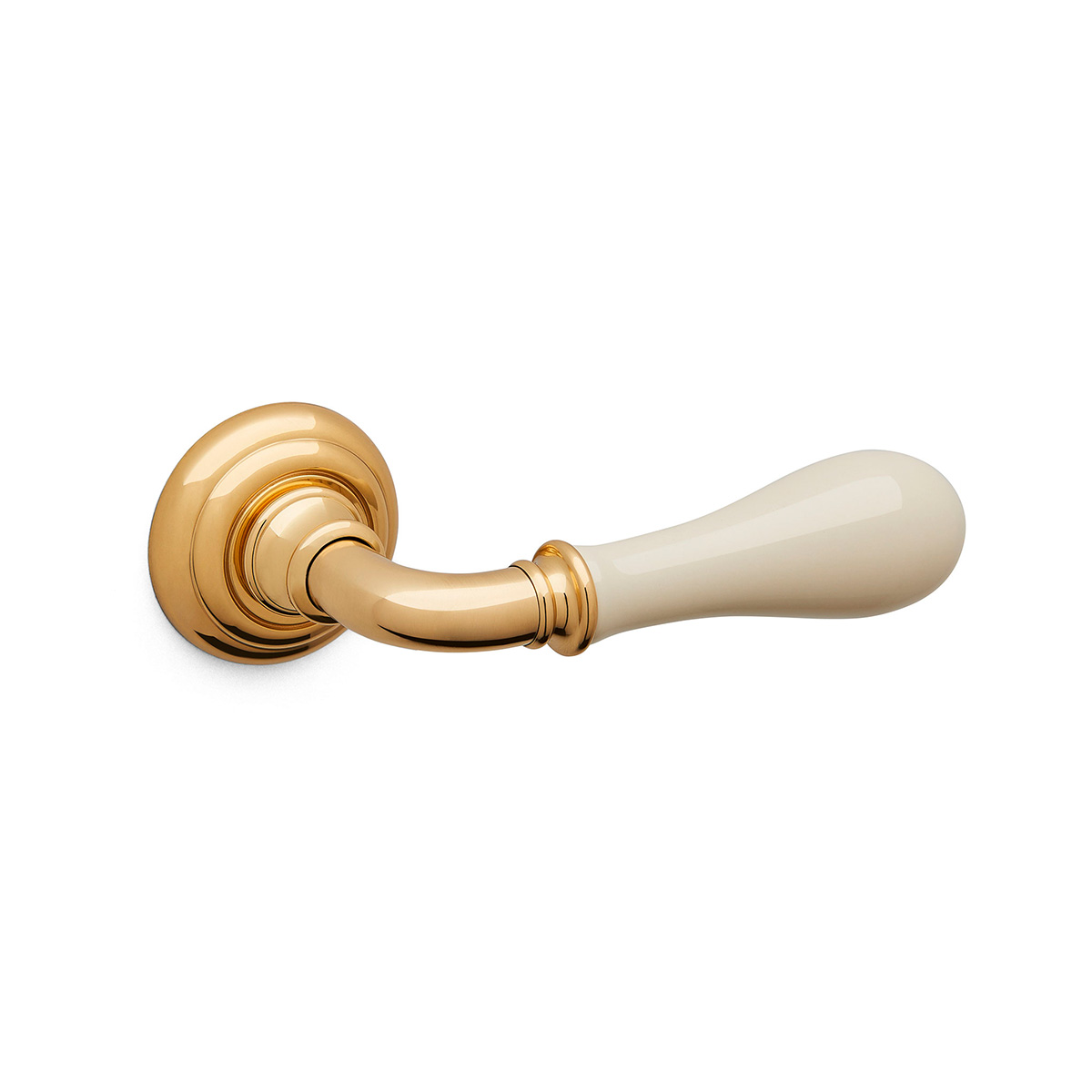 Messing gepolijst/ivoor porselein Doge deurkruk op rozet 51×12 mm.