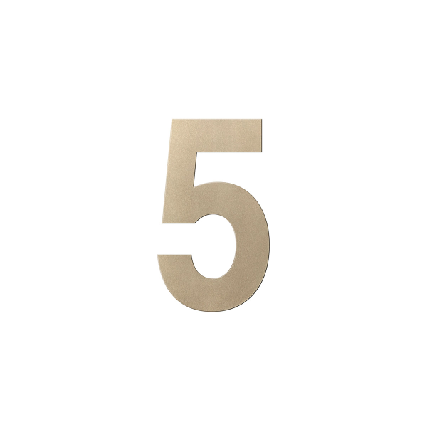 Dit huisnummer ‘5’ is gemaakt van RVS en heeft een Champagne blend finish. Het huisnummer heeft een grootte van 200 mm en is 2 mm dik.