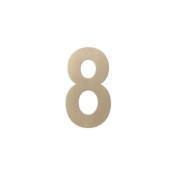 Dit huisnummer ‘8’ is gemaakt van RVS en heeft een Champagne blend finish. Het huisnummer heeft een grootte van 200 mm en is 2 mm dik.
