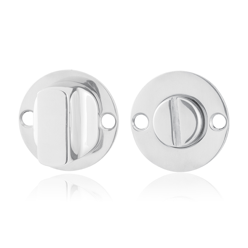 Privacy en stijl gaan perfect samen met dit kwalitatieve, platte toiletgarnituur in gepolijst RVS. De ronde rozet heeft een afmeting van 38×2 mm. De toiletstift heeft een dikte van 8 mm en een grote knop. De bevestiging van de rozet blijft zichtbaar.