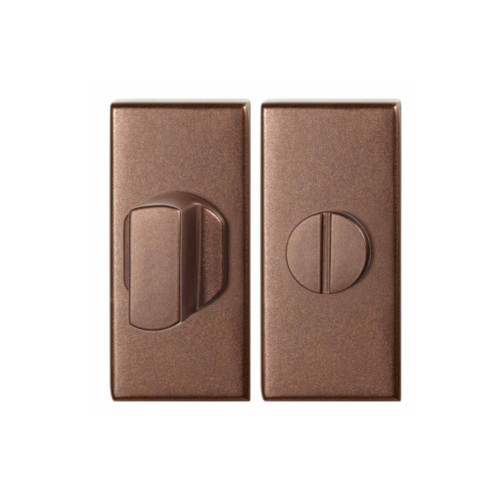 Privacy en stijl gaan perfect samen met dit kwalitatieve toiletgarnituur in de finish Bronze blend. De rechthoekige rozet heeft een afmeting van 70×32 mm. De toiletstift heeft een dikte van 8 mm en een grote knop. De bevestiging van de rozet is weggewerkt achter de cover.