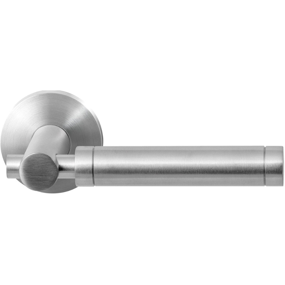 RVS geborsteld/RVS gepolijst deurkruk Moko duo op ronde rozet, 50×8 mm.