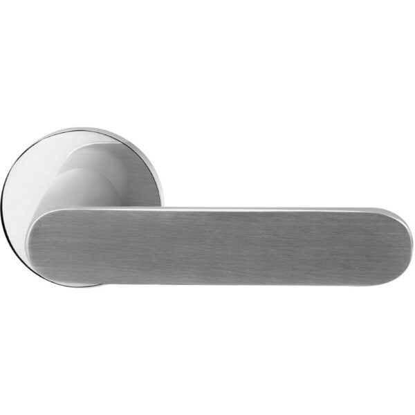 RVS gepolijst/RVS geborsteld deurkruk Knipo duo op ronde rozet, 50×8 mm.