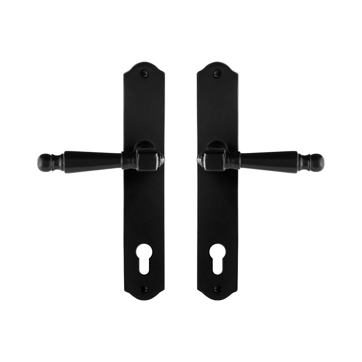 Smeedijzer zwarte deurkruk Mela op schild PC92, 238x41x4 mm.