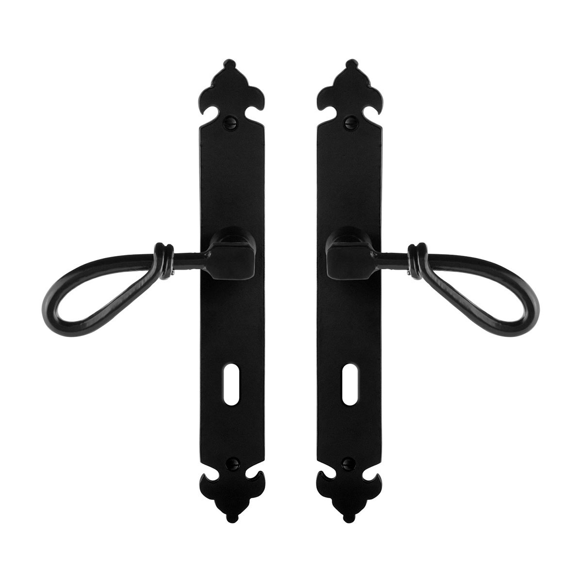 Smeedijzer zwarte deurkruk Sula op langschild BB72, 291x41x4 mm.