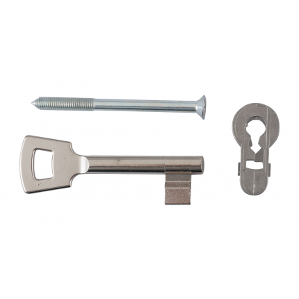 Zowel het bevestigingsmiddel als een nieuwe sleutel worden meegeleverd.