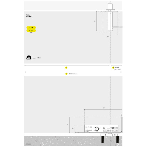 De kern bestaat uit een compact hydraulisch draaipunt, met een interne CAM en sluitklep die zorgt voor een soepele en stille beweging. Openen is licht, sluiten is zacht, een vloeiende beweging die past bij verfijnde woon-, horeca- of creatieve interieurs.