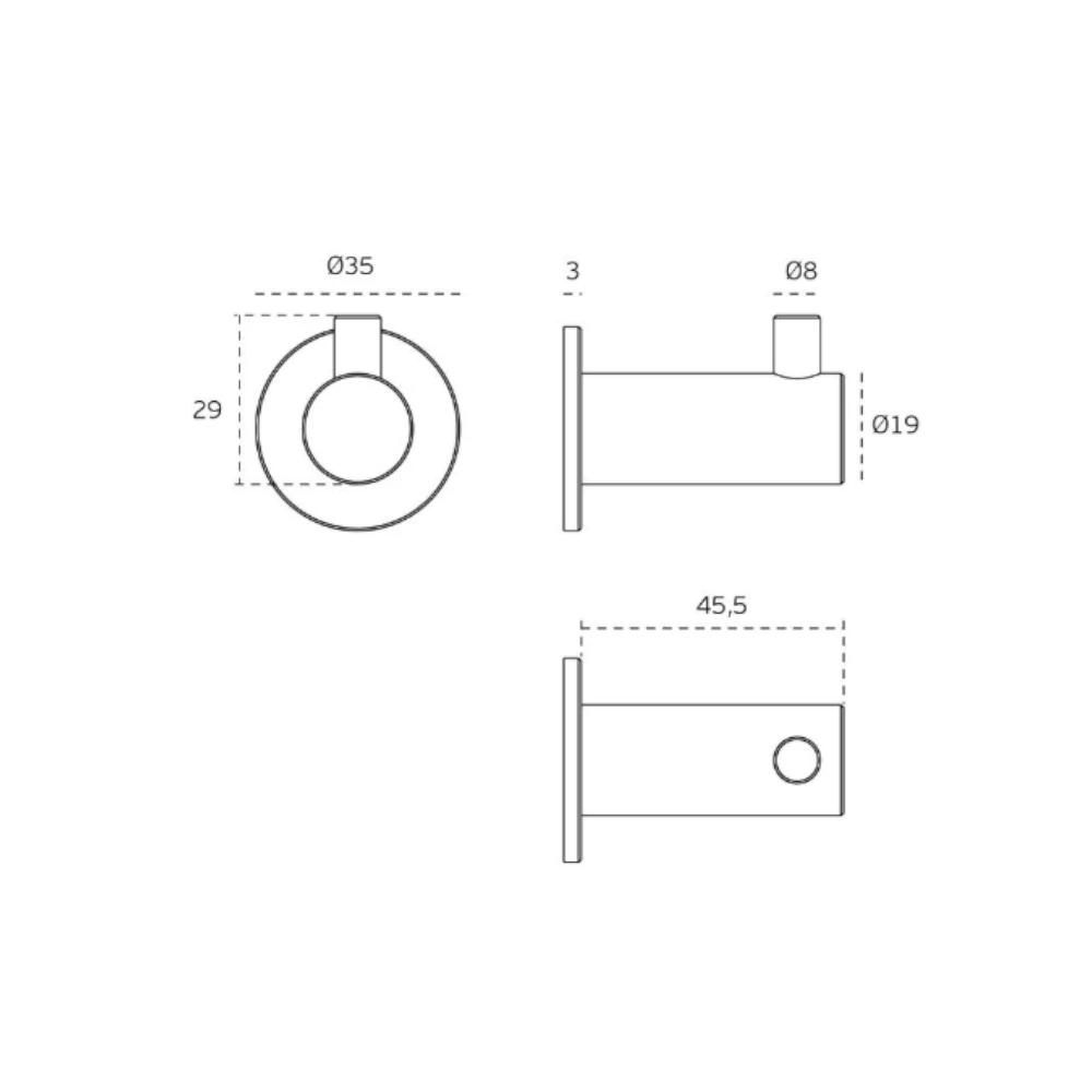 JNF serie Fine kapstokhaak met rozet, lengte 48 mm, 19 mm rond, RVS-geborsteld