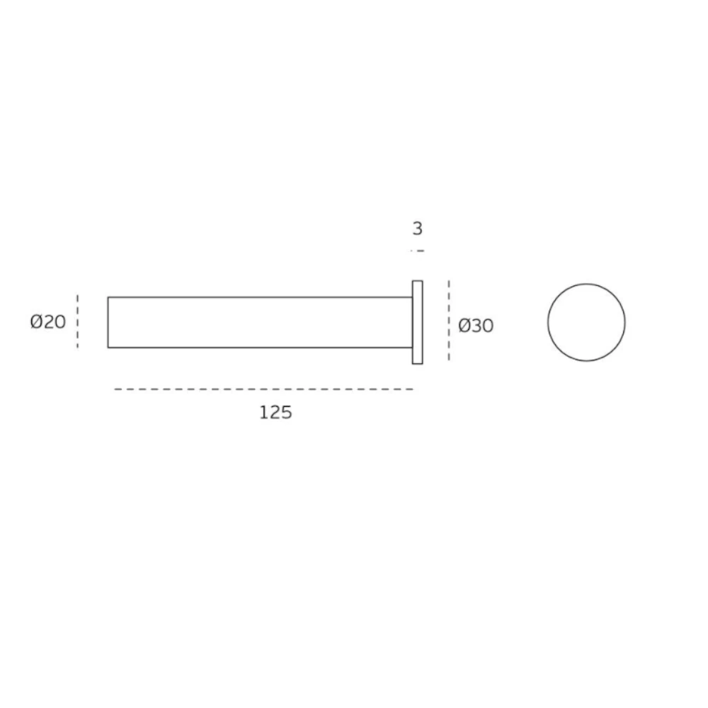 JNF serie Tonda kapstokhaak enkel, lengte kapstokhaak 125mm rond 20mm, RVS-geborsteld
