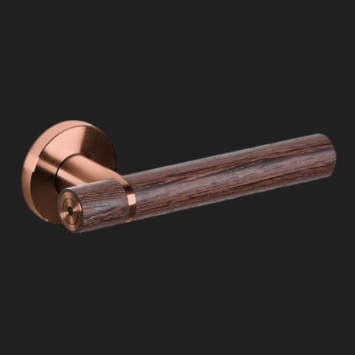 JNF Wenge serie deurkruk met ronde kruk rozet geveerd, model 418, Titanium-Copper/Wenge