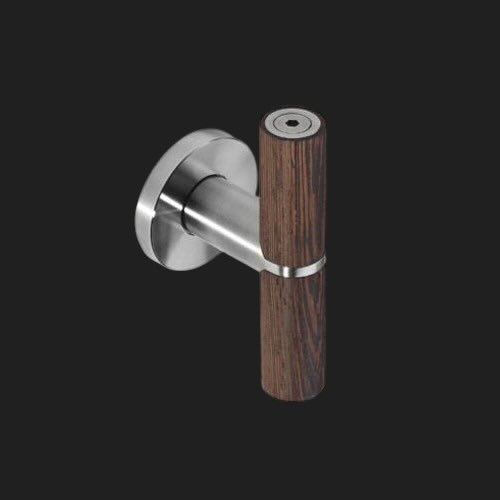 JNF Wenge serie T model deurkruk met ronde kruk rozet geveerd, model 419, RVS-Wenge