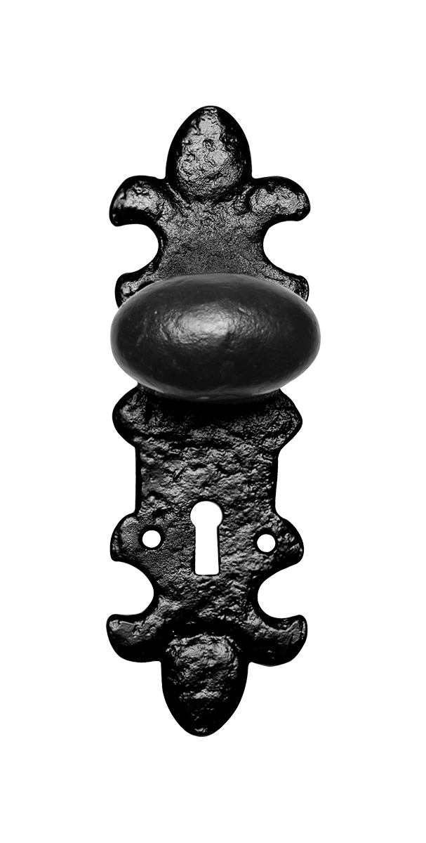 Smeedijzer knop op schild met profielcilinder 55 mm vast