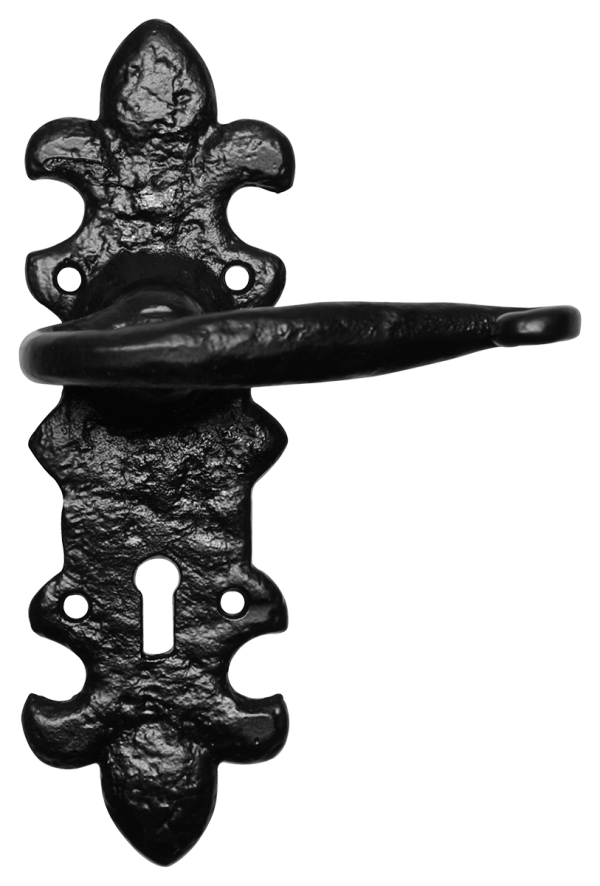 Smeedijzer gatdeel rechts op schild 203×66 mm met sleutelgat 56 mm