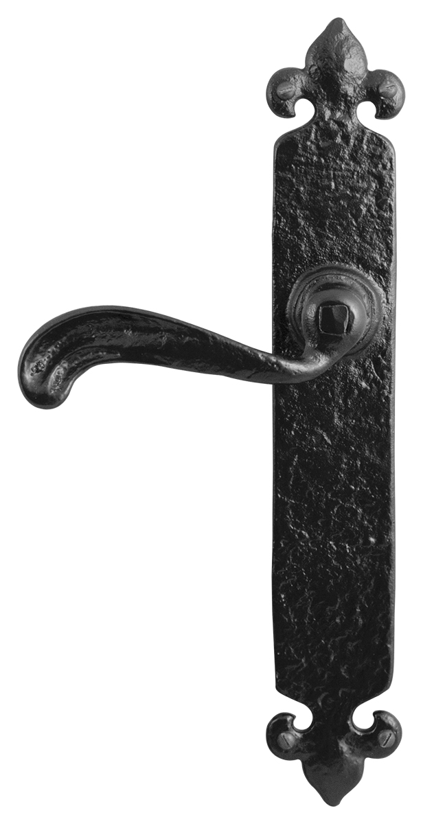 Smeedijzer gatdeel links op schild 288×45 mm met profielcilinder 92 mm