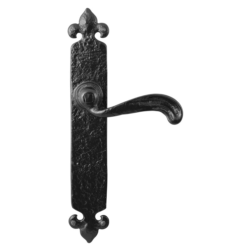 Smeedijzer gatdeel rechts op schild 288×45 mm met profielcilinder 55 mm