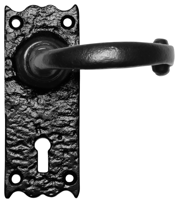 Smeedijzer gatdeel rechts op schild 127×50 mm met sleutelgat 56 mm