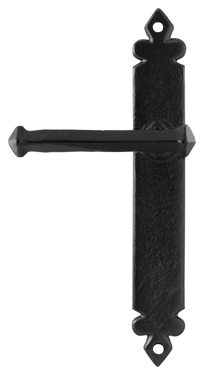 Smeedijzer gatdeel rechts op schild 270×40 mm met sleutelgat 56 mm rechtswijzend