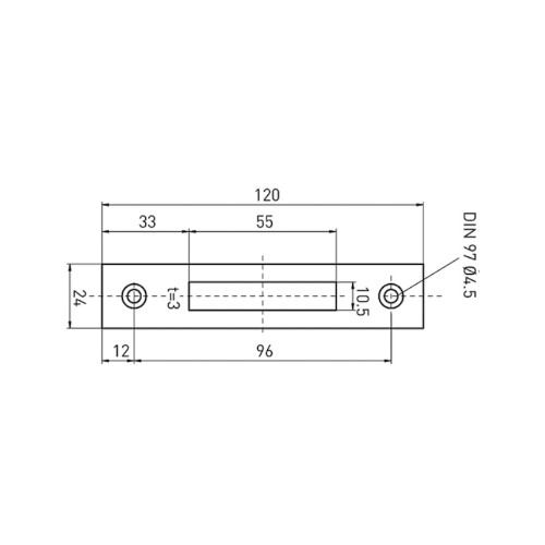 Mauer sluitplaat 450 voor o.a smaldeur kast/nacht slot 4408, afmeting sluitplaat 120x24x3.0mm rechthoekig verzinkt, links en rechts bruikbaar.