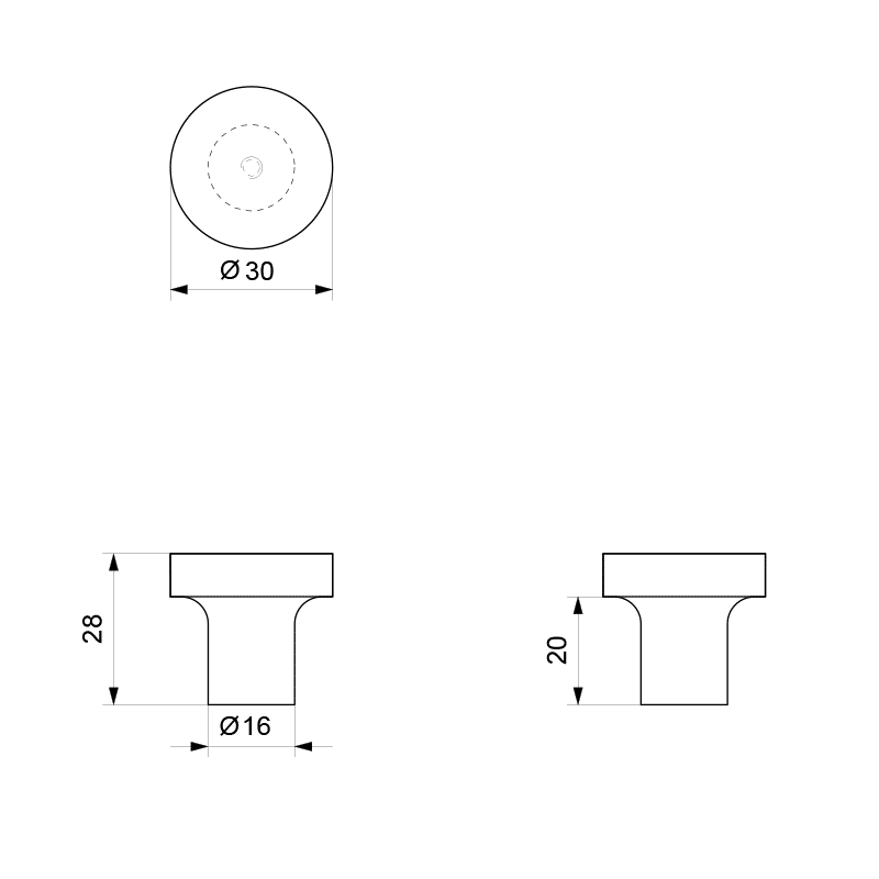 Kies voor wit op jouw meubel met onze smaakvolle, witte meubelknoppen. Deze variant heeft een diameter van 30 mm en een hoogte van 28 mm.