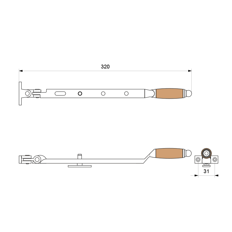 gpf4675-09-ika-raamuitzetter-rvs-beuken_2|RVS gepolijst beuken Ika raamuitzetter met ronde eindknop 320mm
