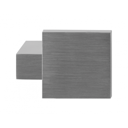 Deze korte, verkropte knopkruk heeft een vierkante knop. Het product in geborsteld RVS is draaibaar en wordt geleverd met een krukstift.