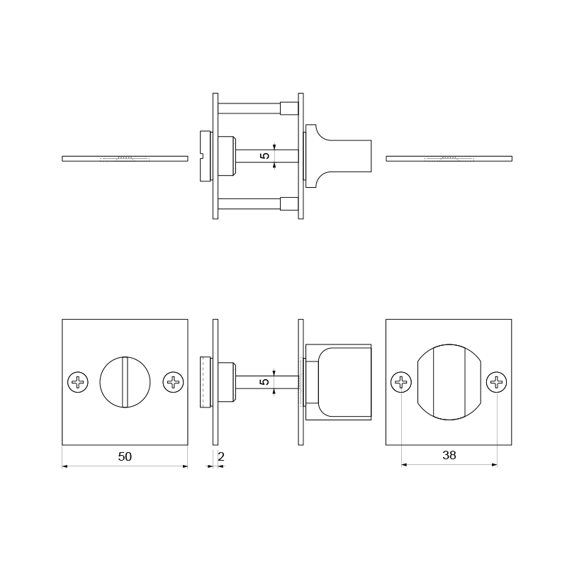 toiletgarnituur-gpf0911-48-50x50x2mm-stift-5mm-rvs-gepolijst-grote-knop|Toiletgarnituur 50x50x2mm stift 5mm RVS gepolijst grote knop