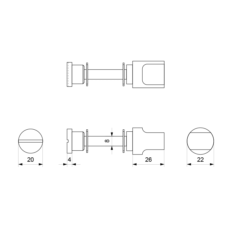 Deze toiletstift is uitgevoerd in geborsteld RVS en heeft een dikte van 8 mm. Hij is geschikt voor een schild met WC-slotsparing en heeft een normale knop.
